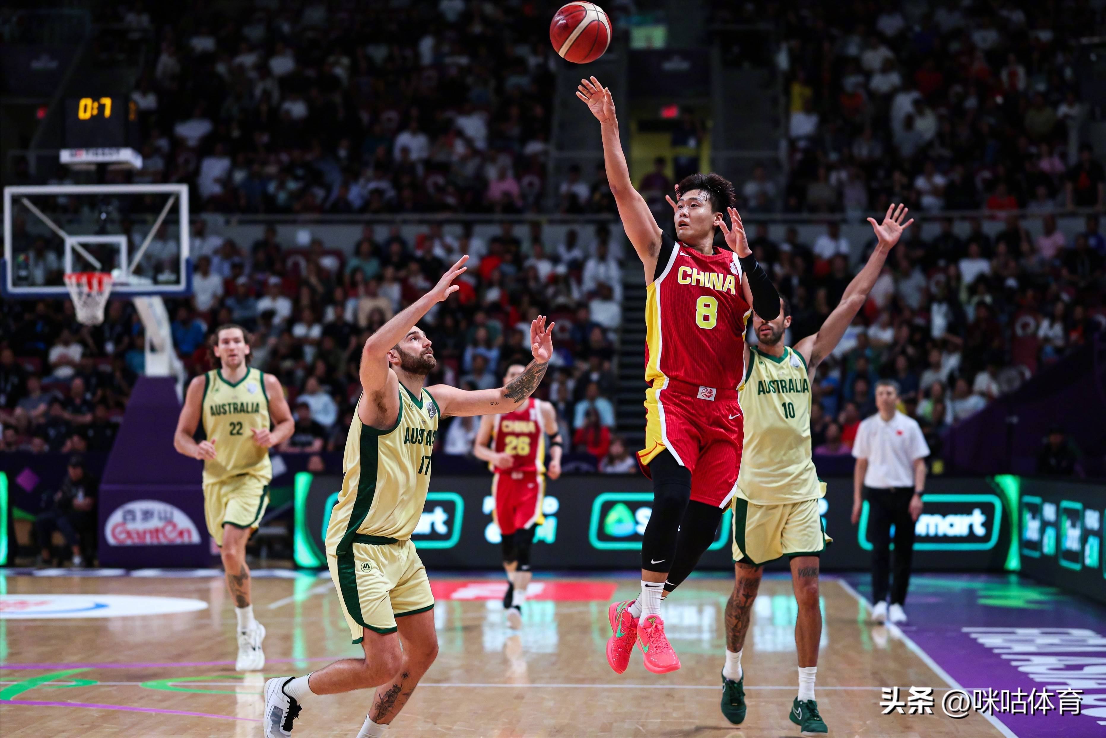 第二节,澳大利亚手感回暖,险些把中国队的最先上风蚕食殆尽,许多东谈主记挂的场景似乎行将出现。然而要津时间,中国队又把敌手顶了且归。半场结束,中国队46-42最先。