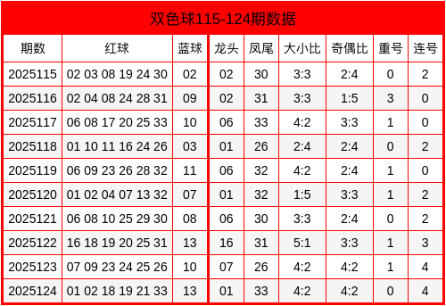 双色球2025124期开出奖号:红球01、02、18、19、21、33,蓝球13。