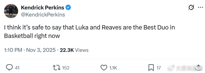 名嘴帕金斯面临两东说念主完好的合作与弘扬也不禁发文陈赞:“我不错细观点说,东契奇与里夫斯等于现在篮球寰宇最佳的双东说念主组。”