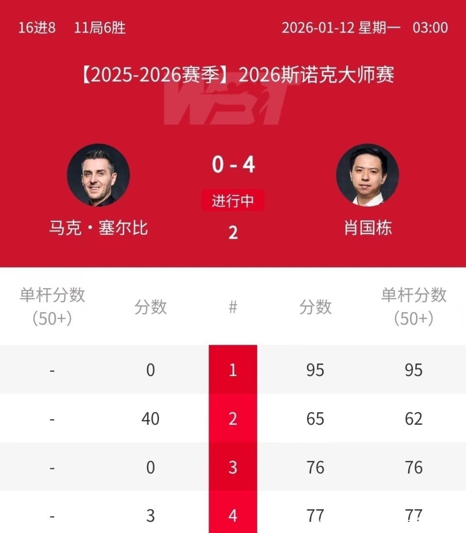 北京时代1月12日凌晨,2026年斯诺克行家赛拉开帷幕。刚刚放胆的第一轮的一场焦点比赛中,武汉公开赛双冠王肖国栋情状骁勇,他以6-2的比分打败4届世锦赛冠军、3届行家赛冠军“磨王”马克-塞尔比,强势晋级8强。